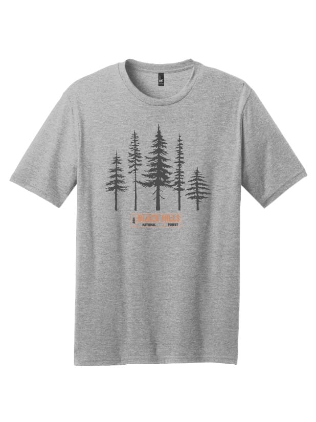 Printed on a black cotton/poly blend tee.