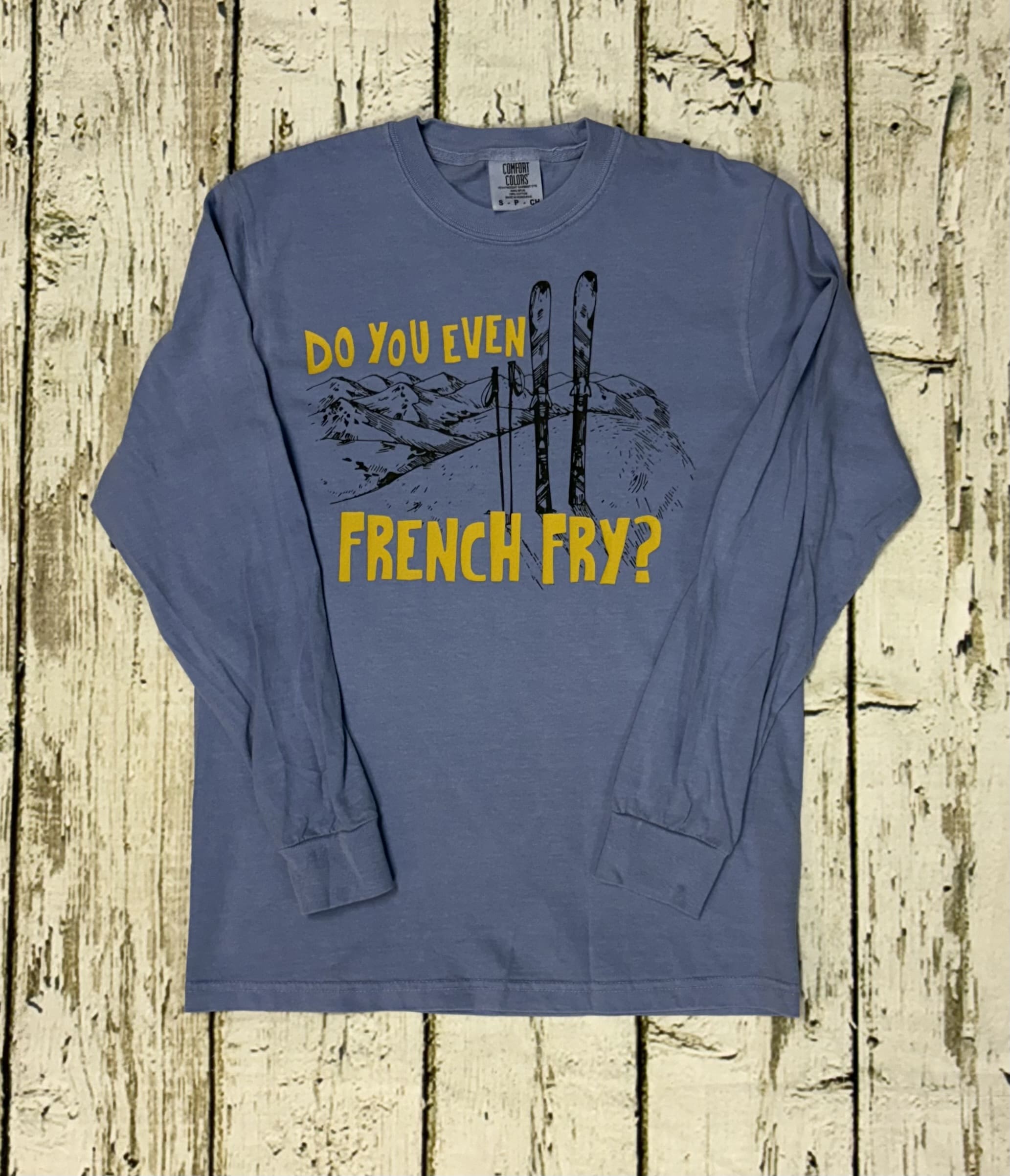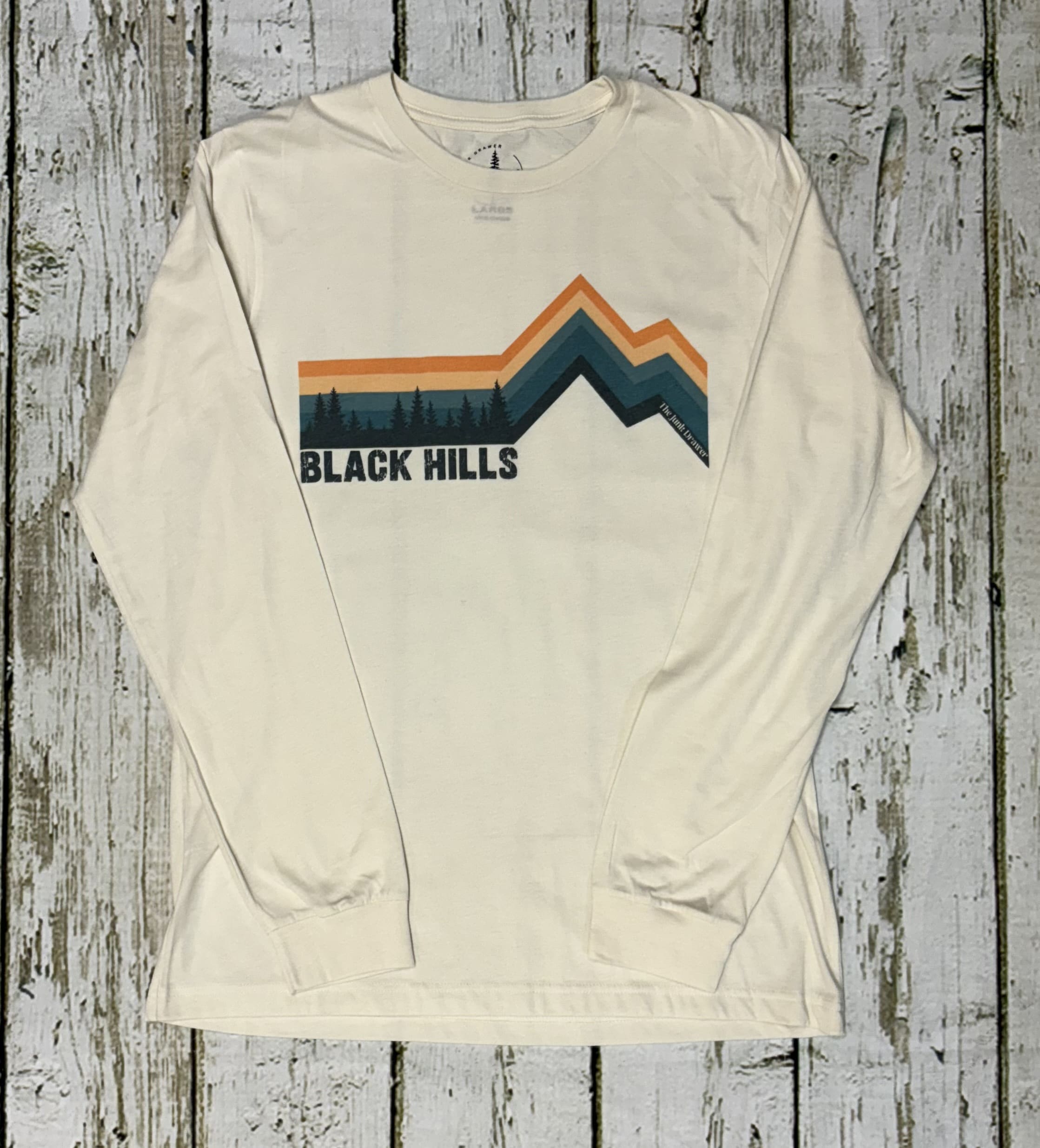 Printed on a heathered black frost, unisex sizing, cotton/poly blend long sleeve tee.