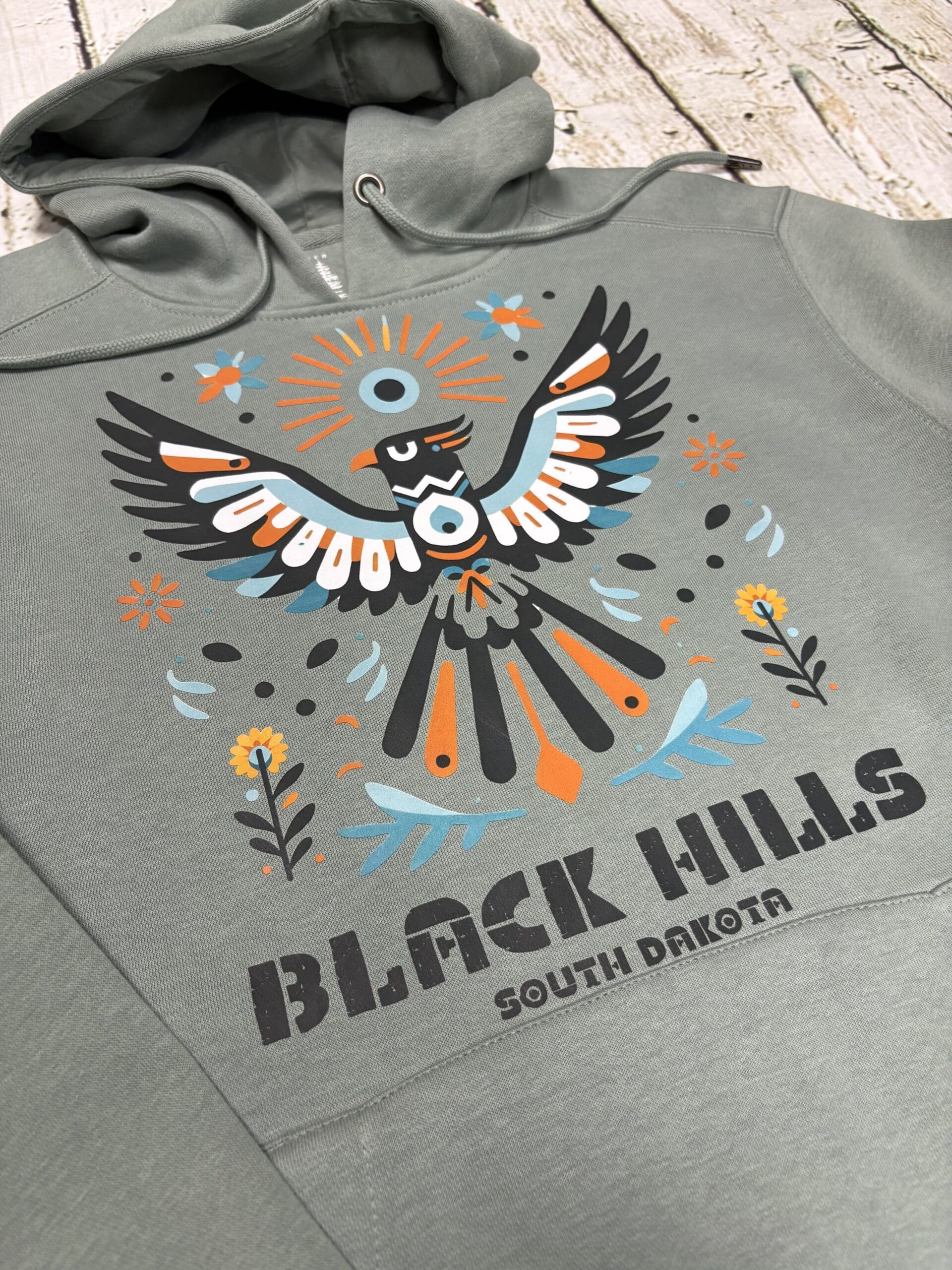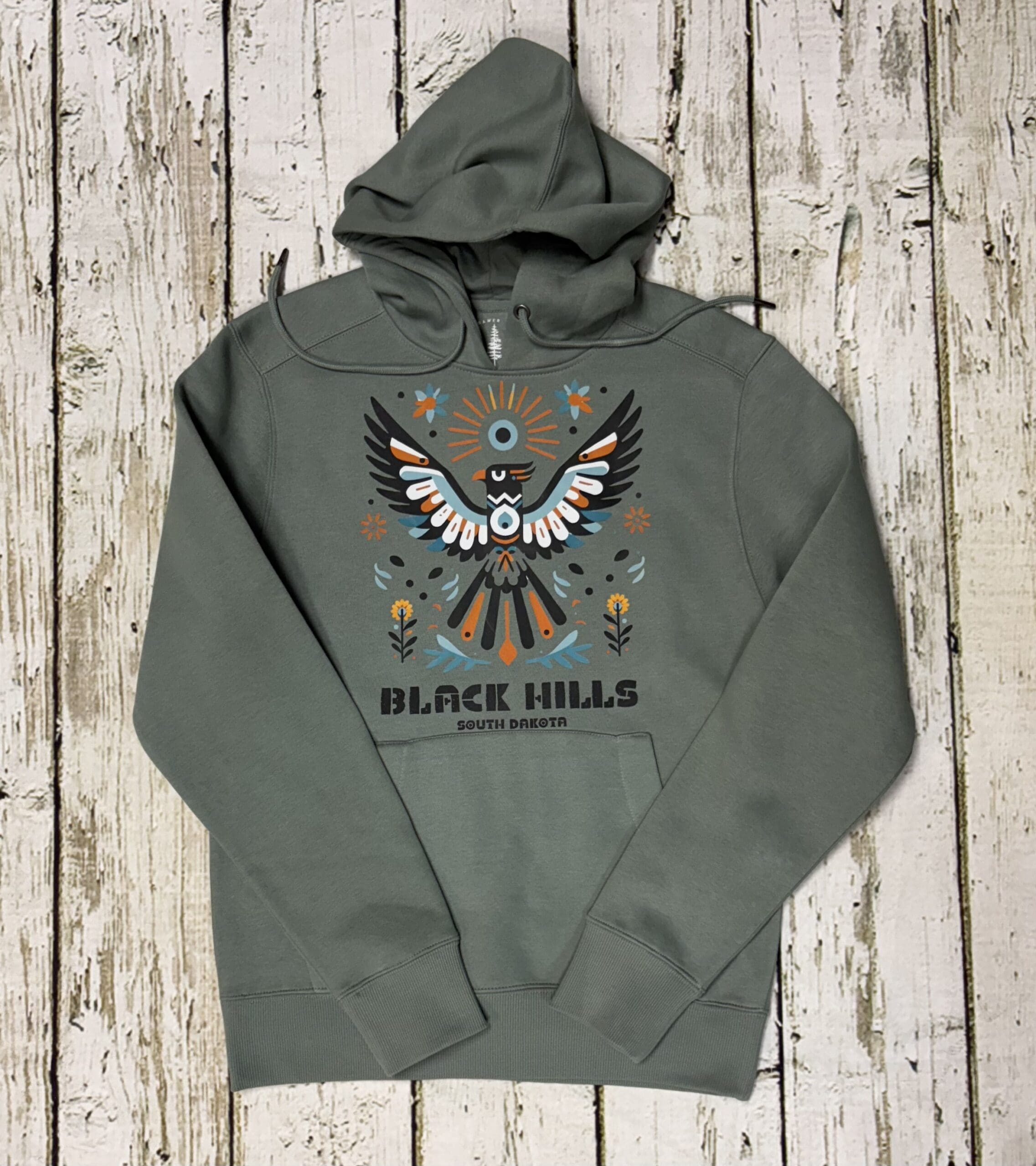 Printed on a laurel green, unisex sizing, 100% cotton hoodie.