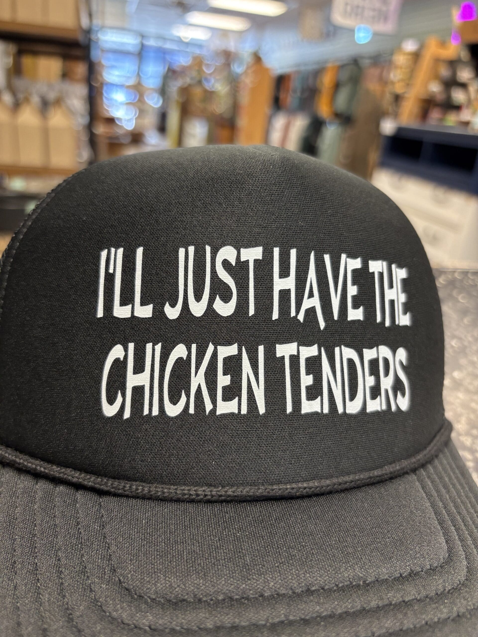 Previous Product CHICKEN TENDERS TRUCKER HAT $20.00 CHICKEN TENDERS TRUCKER HAT quantity Add to cart Category: Hats Additional information Additional information Weight 2.5 oz Related products NOT SLIM KINDA SHADY TRUCKER HAT Quick View NOT SLIM KINDA SHADY TRUCKER HAT Quick View HatsNOT SLIM KINDA SHADY TRUCKER HAT $20.00 Add to cart SPEND FIDDIES TRUCKER HAT Quick View SPEND FIDDIES TRUCKER HAT Quick View HatsSPEND FIDDIES TRUCKER HAT $20.00 Add to cart DRINKS WELL WITH OTHERS TRUCKER HAT Quick View DRINKS WELL WITH OTHERS TRUCKER HAT Quick View HatsDRINKS WELL WITH OTHERS TRUCKER HAT $20.00 Add to cart