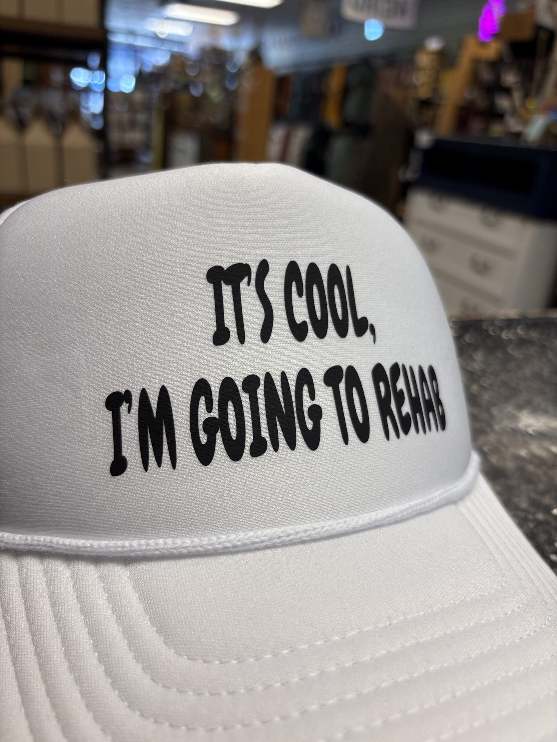 Previous Product Next Product GOING TO REHAB TRUCKER HAT $20.00 GOING TO REHAB TRUCKER HAT quantity Add to cart Category: Hats Additional information Additional information Weight 2.5 oz Related products SMELLS LIKE A FOOT TRUCKER HAT Quick View SMELLS LIKE A FOOT TRUCKER HAT Quick View HatsSMELLS LIKE A FOOT TRUCKER HAT $20.00 Add to cart SPEARFISH BROWNFISH PATCH HAT Quick View SPEARFISH BROWNFISH PATCH HAT Quick View HatsSPEARFISH BROWNFISH PATCH HAT $28.00 Add to cart THRIFT STORE WHORE TRUCKER HAT Quick View THRIFT STORE WHORE TRUCKER HAT Quick View HatsTHRIFT STORE WHORE TRUCKER HAT $20.00 Add to cart