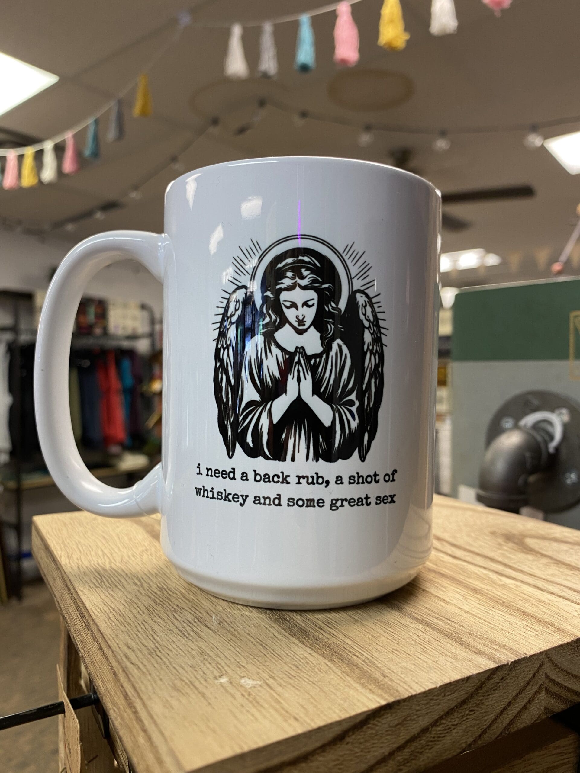 Previous Product Next Product JESUS-BACK RUB, WHISKEY, GREAT SEX CERAMIC MUG $16.99 15OZ CERAMIC MUG Microwave and dishwasher safe. 6 in stock JESUS-BACK RUB, WHISKEY, GREAT SEX CERAMIC MUG quantity Add to cart Category: Cups & Mugs Tag: mugs Additional information Additional information Weight 15 oz Related products MAN GLITTER CERAMIC MUG Quick View MAN GLITTER CERAMIC MUG Quick View Cups & MugsMAN GLITTER CERAMIC MUG $16.99 Add to cart SEE YOU TOMORROW CERAMIC MUG Quick View SEE YOU TOMORROW CERAMIC MUG Quick View Cups & MugsSEE YOU TOMORROW CERAMIC MUG $16.99 Add to cart PSPSPS CERAMIC MUG Quick View PSPSPS CERAMIC MUG Quick View Cups & MugsPSPSPS CERAMIC MUG $16.99 Add to cart