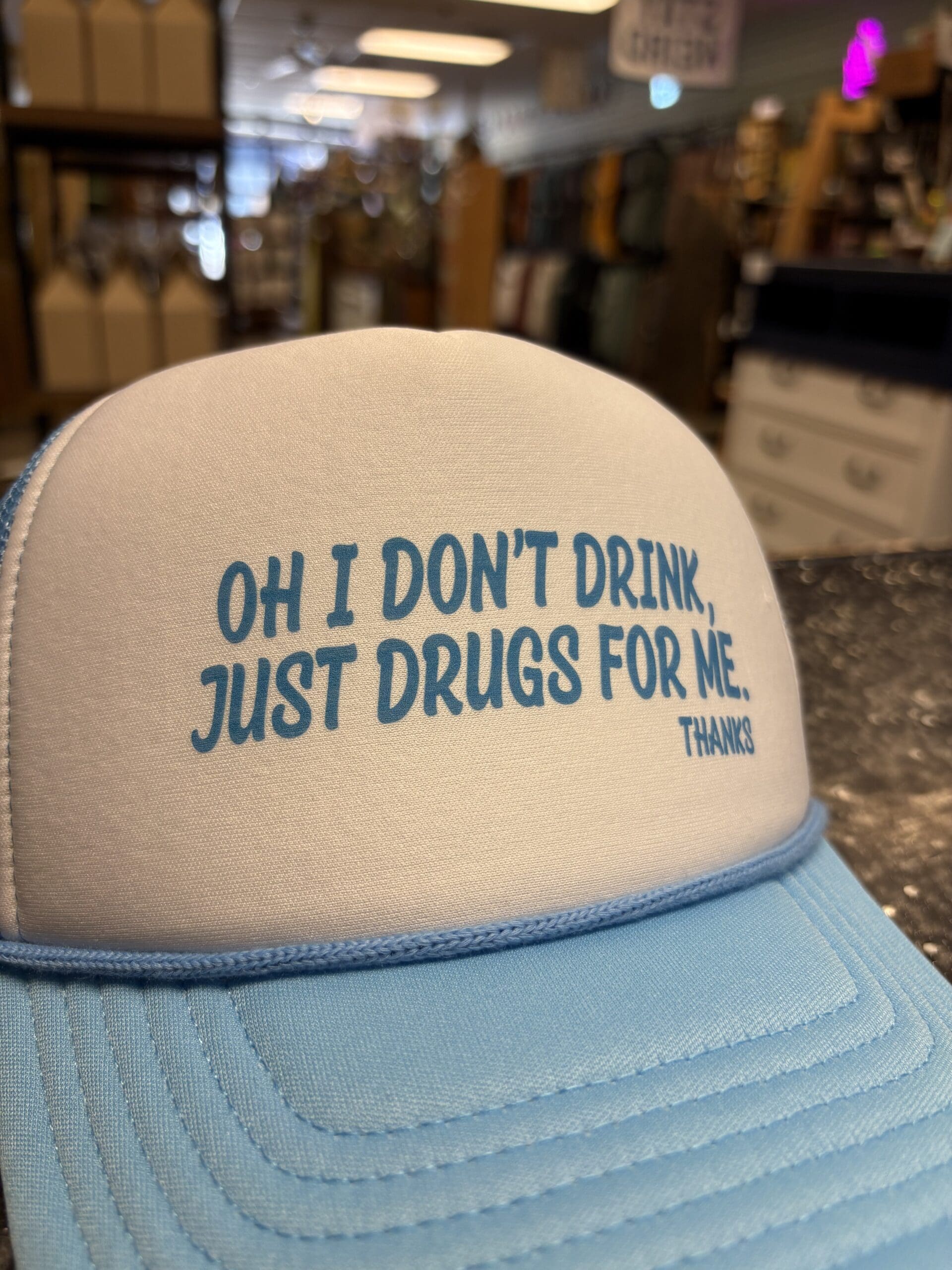 Previous Product Next Product JUST DRUGS FOR ME TRUCKER HAT $20.00 JUST DRUGS FOR ME TRUCKER HAT quantity Add to cart Category: Hats Additional information Additional information Weight 2.5 oz Related products FRESH AIR & BAD DECISIONS TRUCKER HAT Quick View FRESH AIR & BAD DECISIONS TRUCKER HAT Quick View HatsFRESH AIR & BAD DECISIONS TRUCKER HAT $20.00 Add to cart DRINKS WELL WITH OTHERS TRUCKER HAT Quick View DRINKS WELL WITH OTHERS TRUCKER HAT Quick View HatsDRINKS WELL WITH OTHERS TRUCKER HAT $20.00 Add to cart SPEND FIDDIES TRUCKER HAT Quick View SPEND FIDDIES TRUCKER HAT Quick View HatsSPEND FIDDIES TRUCKER HAT $20.00 Add to cart