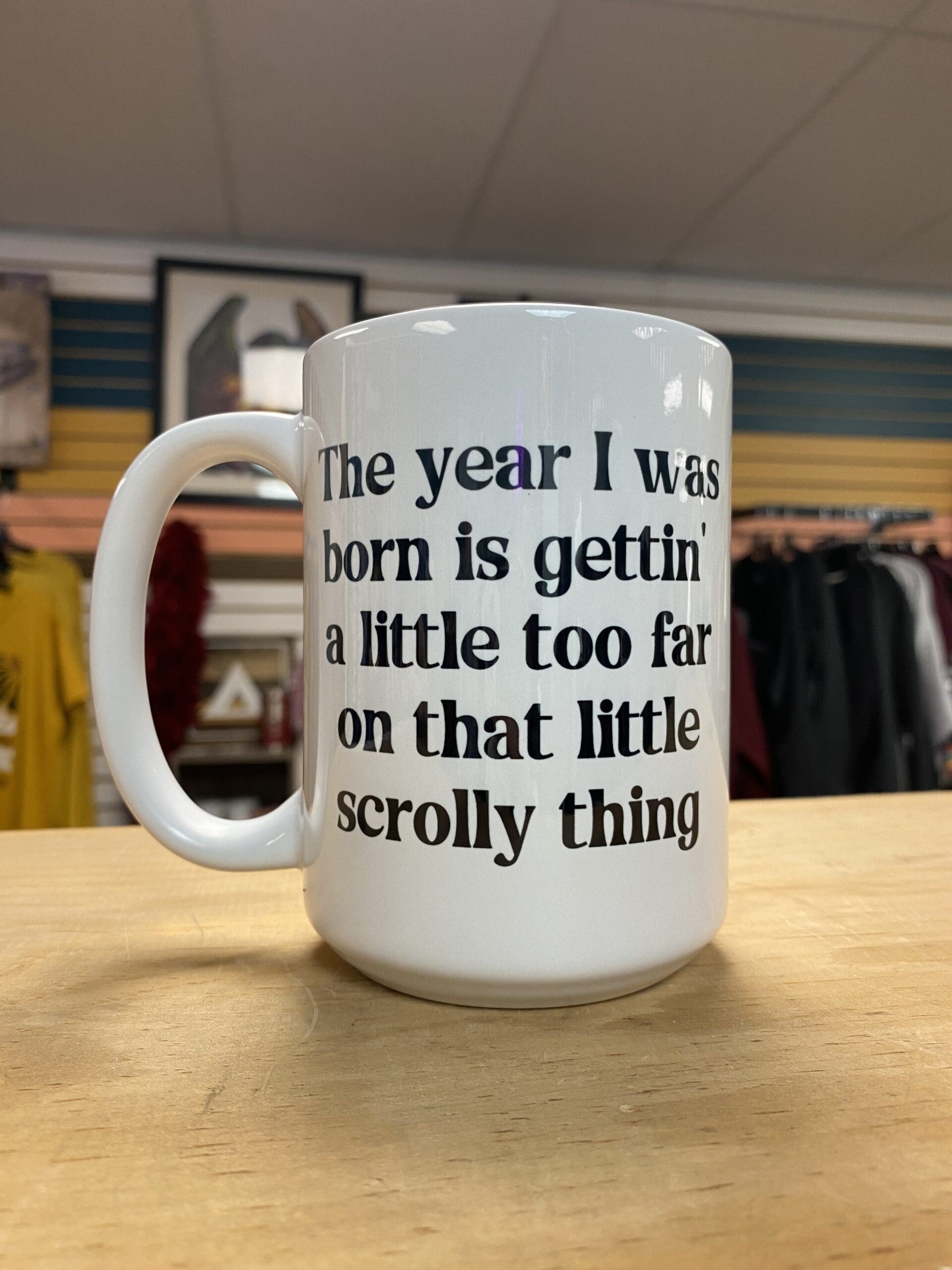 Previous Product Next Product YEAR I WAS BORN IS A LITTLE TOO FAR CERAMIC MUG $16.99 15OZ CERAMIC MUG Microwave and dishwasher safe. 6 in stock YEAR I WAS BORN IS A LITTLE TOO FAR CERAMIC MUG quantity Add to cart Category: Cups & Mugs Tag: mugs Additional information Additional information Weight 15 oz Related products PSPSPS CERAMIC MUG Quick View PSPSPS CERAMIC MUG Quick View Cups & MugsPSPSPS CERAMIC MUG $16.99 Add to cart MAN GLITTER CERAMIC MUG Quick View MAN GLITTER CERAMIC MUG Quick View Cups & MugsMAN GLITTER CERAMIC MUG $16.99 Add to cart EAT PREY LOVE CERAMIC MUG Quick View EAT PREY LOVE CERAMIC MUG Quick View Cups & MugsEAT PREY LOVE CERAMIC MUG $16.99 Add to cart